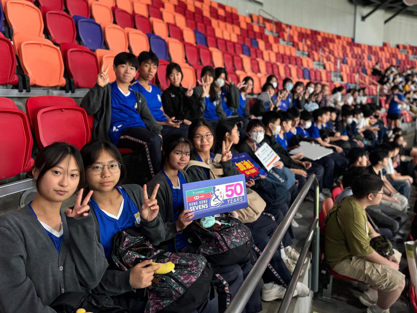 本校中三級(3D)同學於4月17日(星期五)假啟徳體育園主場館參加了康樂文化事業署-學校體育推廣計劃「賽馬會國際七人欖球賽學校導賞團」活動,加深同學對欖球運動的認識,並有機會置身國際大型賽事,感受比賽現場的熱烈氣氛。