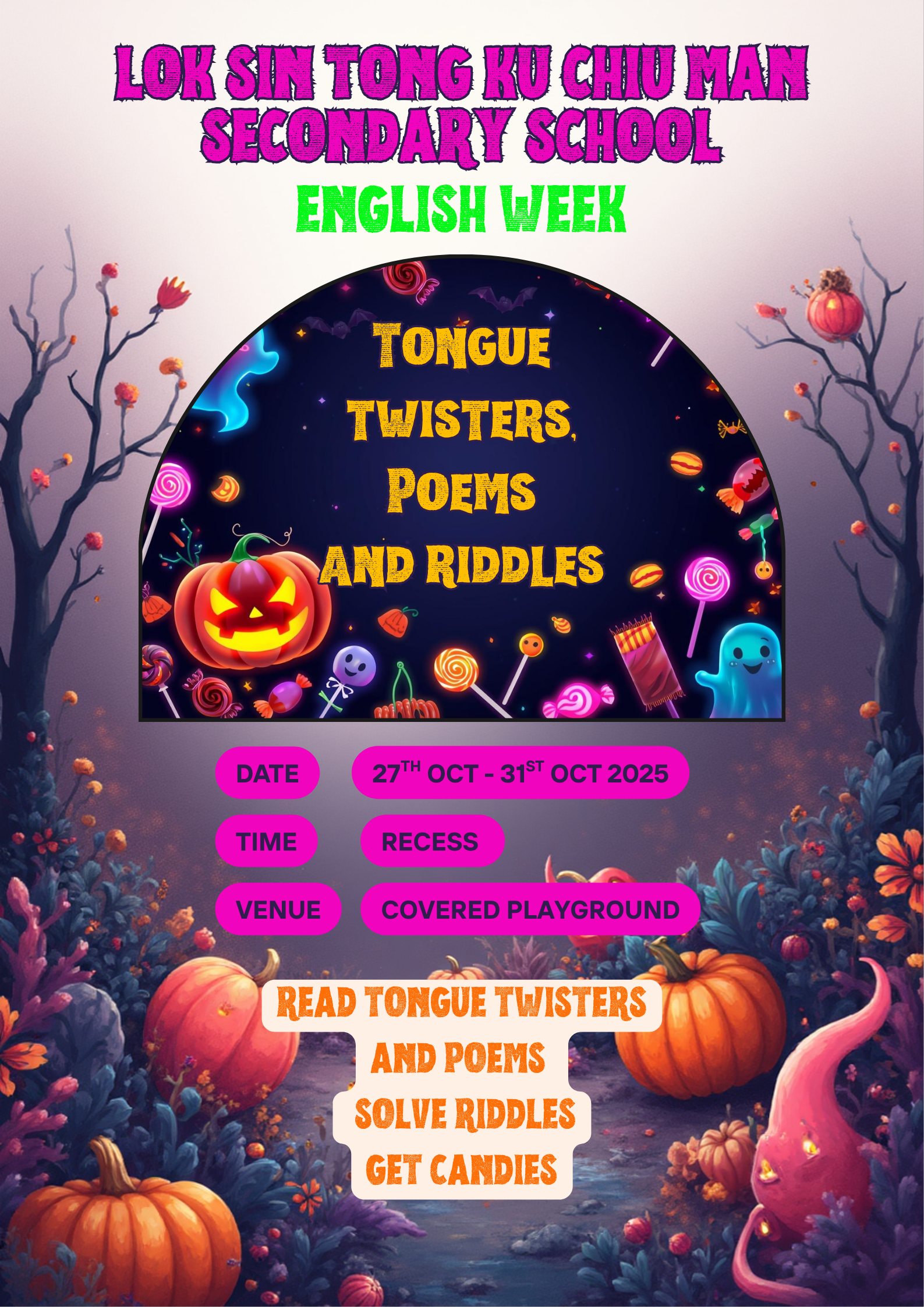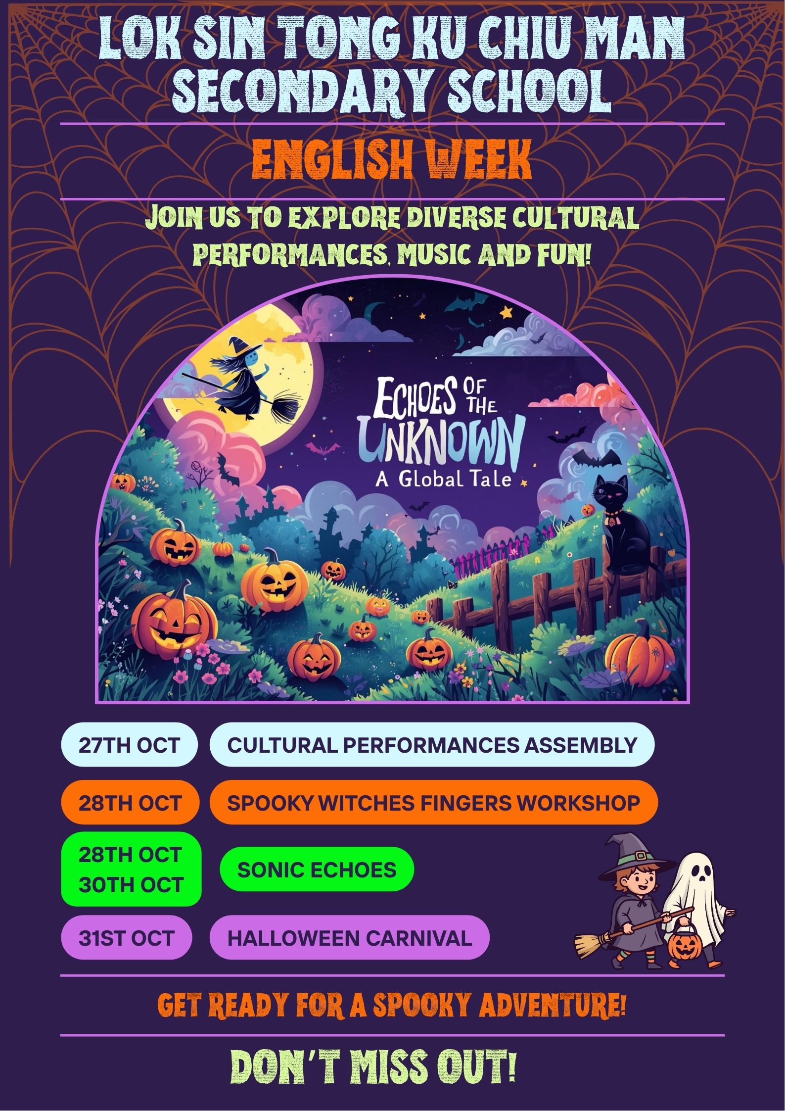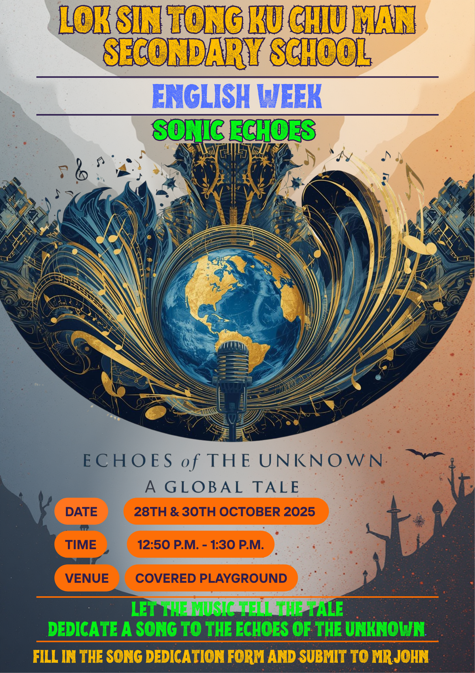 What an incredible week! Our 2025 English Week, themed "Echoes of the Unknown: A Global Tale," was a resounding success, filled with creativity, music, spooky treats, and fantastic cultural exchanges. A huge thank you to every student who participated and made the week so memorable. Let's take a visual journey through the highlights!
